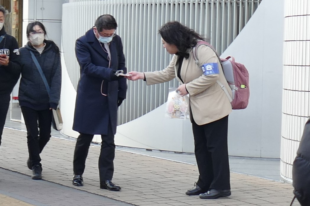 国際女性デーに向けてアピールする青年女性委員会伊藤代表幹事